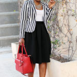 Wearing any type of crop top at work is absolutely inappropriate. Of course there are always exceptions to the rule, right? In this case, the exception is a high waist midi skirt. No exposed skin makes this completely okay for the office. This option is also a great alternative if you are not comfortable exposing your stomach. However, if you are cool with a little skin peeking through check out these previous outfits here, here and here.