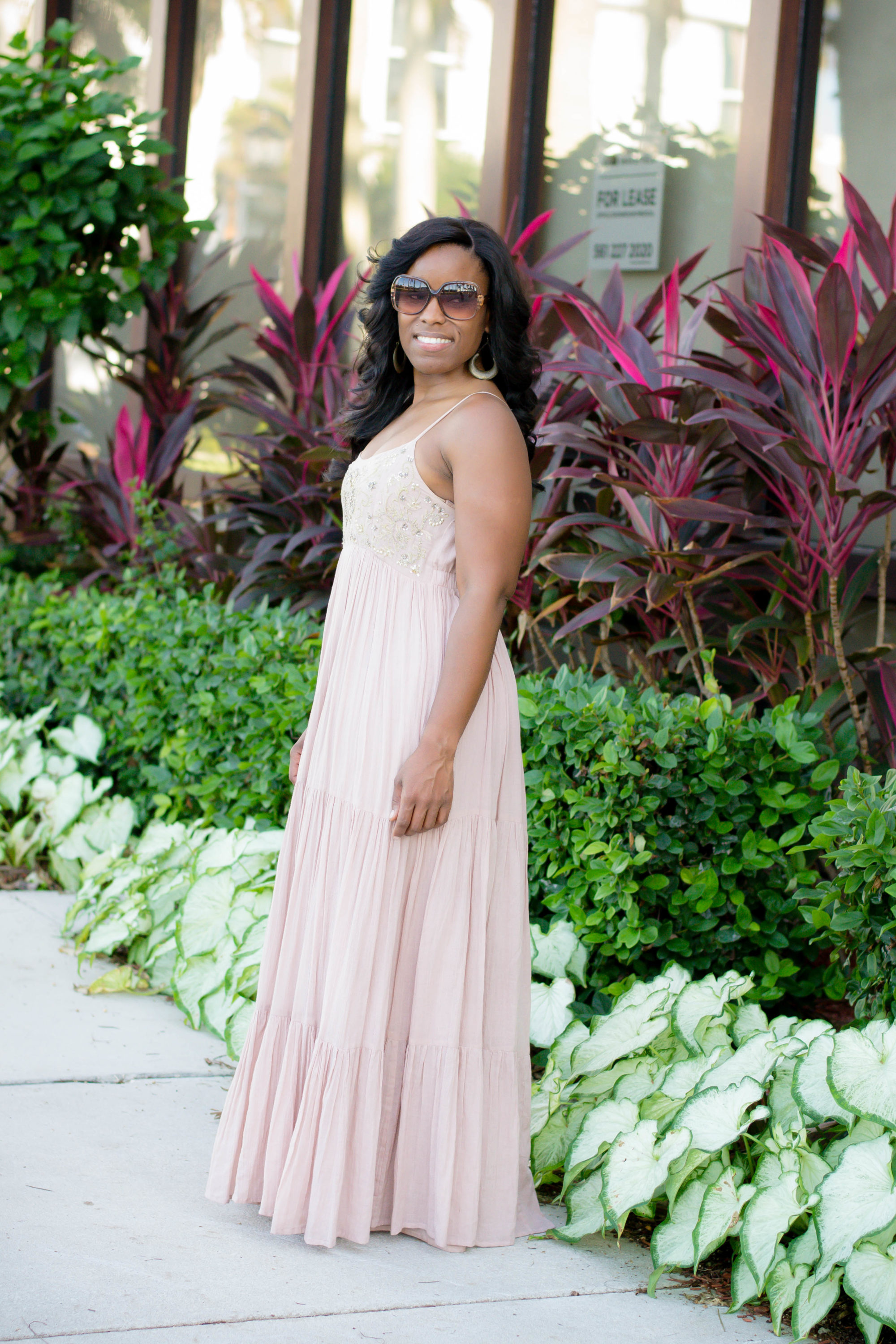 Thrift stores hold so many hidden treasures. I can’t tell you the countless affordable, high quality and unique items I’ve scored from thrift stores. My latest fantastic find was this $5 maxi dress. Can you believe it? I spotted it at the Goodwill on the returns rack after I came out the dressing room. It was just hanging there all by its self. I couldn’t believe that someone had passed up this dress, let alone donated it. Of course, the same thing can be said about all of the items I’ve donated, lol. I once donated my unworn wedding dress, tags still attached (long story).